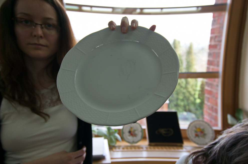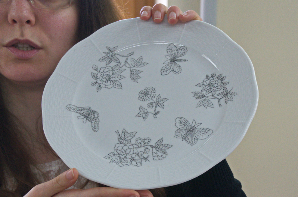 Аналогичным образом делаются тарелки с рисунком - во вращающейся форме.