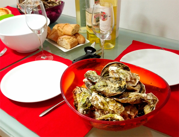 В честь выхода шестого айфона решили сделать праздничный ужин. Но не простой, а тематический. Тема - как питались французские крестьяне XIX века. А питались они известно как. Устрицы - еда бедняков. (Это когда бедняки поголовье устриц резко сократили - их, в смысле устриц, а не бедняков, начали разводить на фермах и устрицы стали модной едой у гурманов.) Под устрицы - простой хлеб, ну и дешевенькое крестьянское винцо - бурда из сорта гамэ.