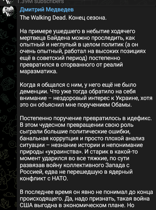 А как вам понравились изящные словеса "нашего любимого блогера" о Байдене? Сравнение с The Walking Dead, м-м-м, насладимся: