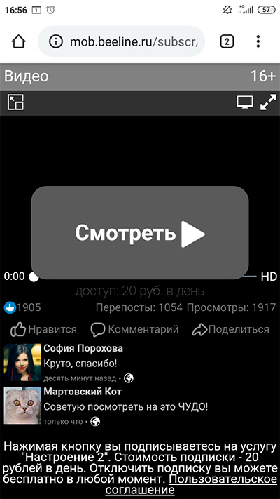 Платная подписка просто в момент просмотра ролика при нажатии кнопки "Смотреть" - это красиво!