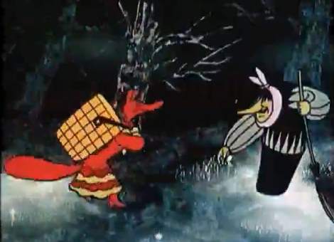 Да, наша хозяйственная. Украла лиса Жихарку, убегает, рядом летит Баба-Яга: "А скивиродка у тебя есть?" 😉 голосом Ливанова: