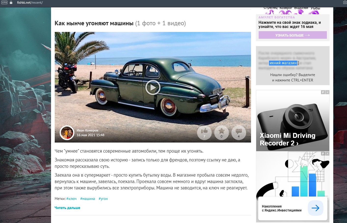 ПыСы. Неодократно вижу машины на парковке, которые соответсвуют всем признакам вверху (20-летние базовые форды, например), но человек ставит клюку на руль "от угона". Об@яснить это поведение не могу, кроме как запущенным психичексим расстрoйством. Наверное, этот чел ключ фольгой оборачивает.