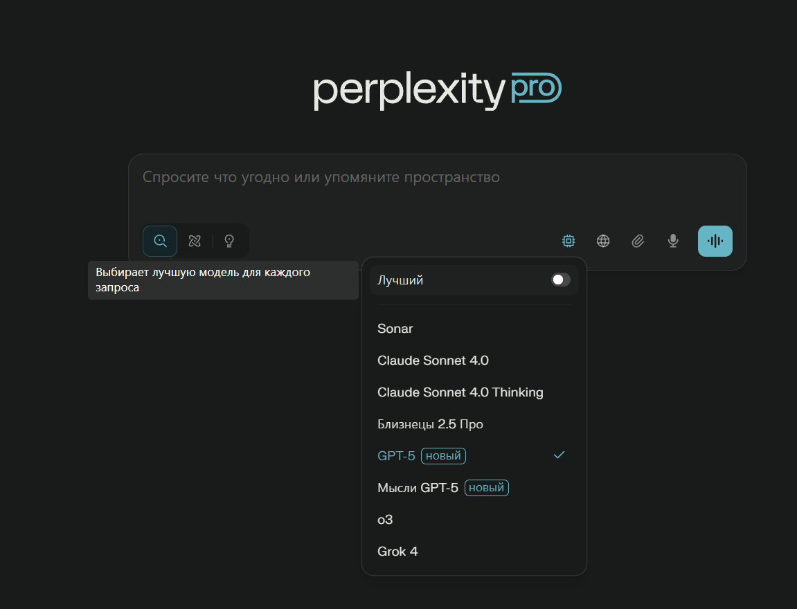 Ну и все, вы бесплатно получаете годовую подписку Perplexity Pro, в которую входят все вот эти модели.
