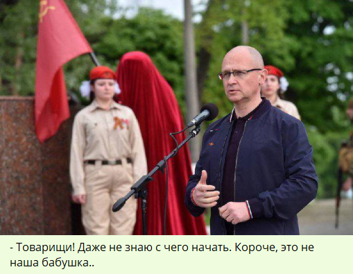 В России из этой бабушки сделали символ. Появилась информация, что она из Дмитриевки Киевской области. Появилась информация, что ее чудом из-под носа украинских карателей выкрал сын и вывез в Россию (назывался даже, прости небо, Барнаул). Появились муралы с изображением бабушки. Появились люди, посаженные на осквернение муралов с изображением бабушки. Появились памятники бабушке. Были снесены памятники бабушке, потому что люди на них карабкались. Сегодня утром чудовищный памятник бабушке поставили в оккупированной части Мариуполя!