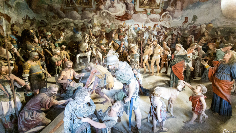 На следующий день с утра отправились в Sacro Monte di Varallo - эдакий "Новый Иерусалим" в Пьемонте, в том смысле, что это сооружение делали для паломников, чтобы они могли ознакомиться с 3D-сценами из Библии. Само место очень интересное, к тому же оно находится на вершине холма, откуда открываются красочные виды на долину. (О Sacro Monte di Varallo будет отдельная статья, оно того стоит.)