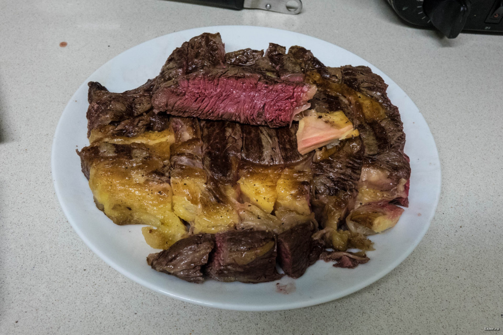 Это дорогое мясо, где-то под 20 евро. А вот обычный здоровенный антрекот будет стоить где-то 5 евро.
