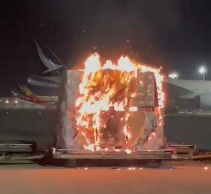 В эти выходные в аэропорту Гонконга загорелись три палеты с грузом смартфонов Vivo Y20 и аксессуаров к ним. Там совершенно непонятно, загорелся ли один смартфон, а от него все остальные, но три палеты горели по полной программе: сначала загорелась одна, от нее огонь перекинулся на другие две.