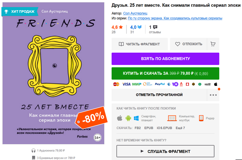 Но я о другом. На "Литресе" появилась книга Сола Аустерлица "Друзья. 25 лет вместе. Как снимали главный сериал эпохи".