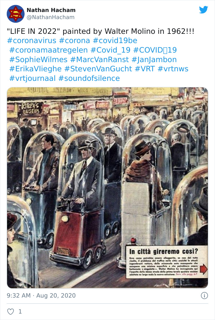 Это знаменитый рисунок, сделанный в 1962 году - персональные автомобили будущего. Ну, кстати, Smart или Renault Twizy - примерно из этой серии, только значительно комфортнее.