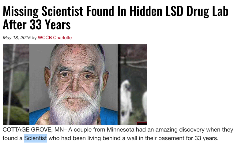 Статья "Missing Scientist Found In Hidden LSD Drug Lab After 33 Years".