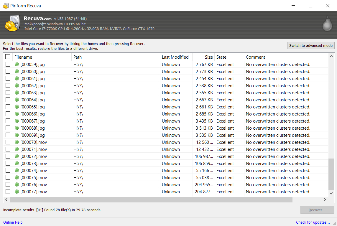 У меня вечно файл, который нужно восстановить, помечен уже красным (невосстанавливаемый), а всякое ненужное барахло зелёным и отлично восстанавливается. Прям засада )... Хоть и не перезаписывал ничего сверху ещё.