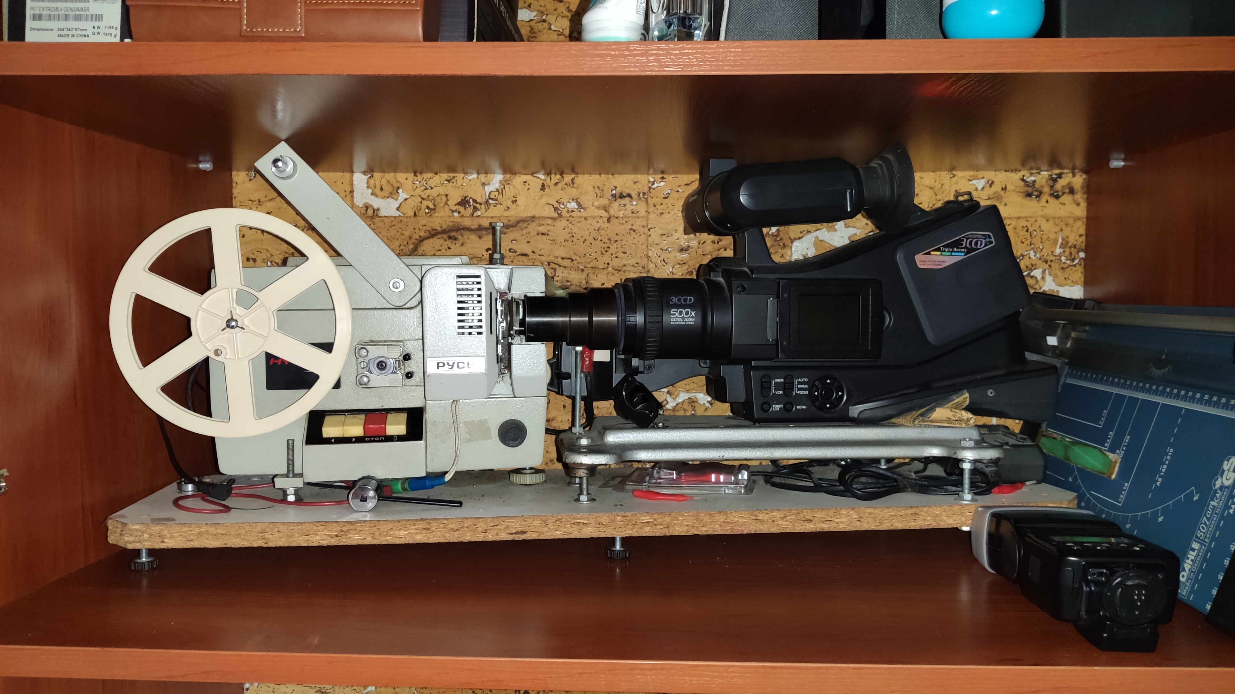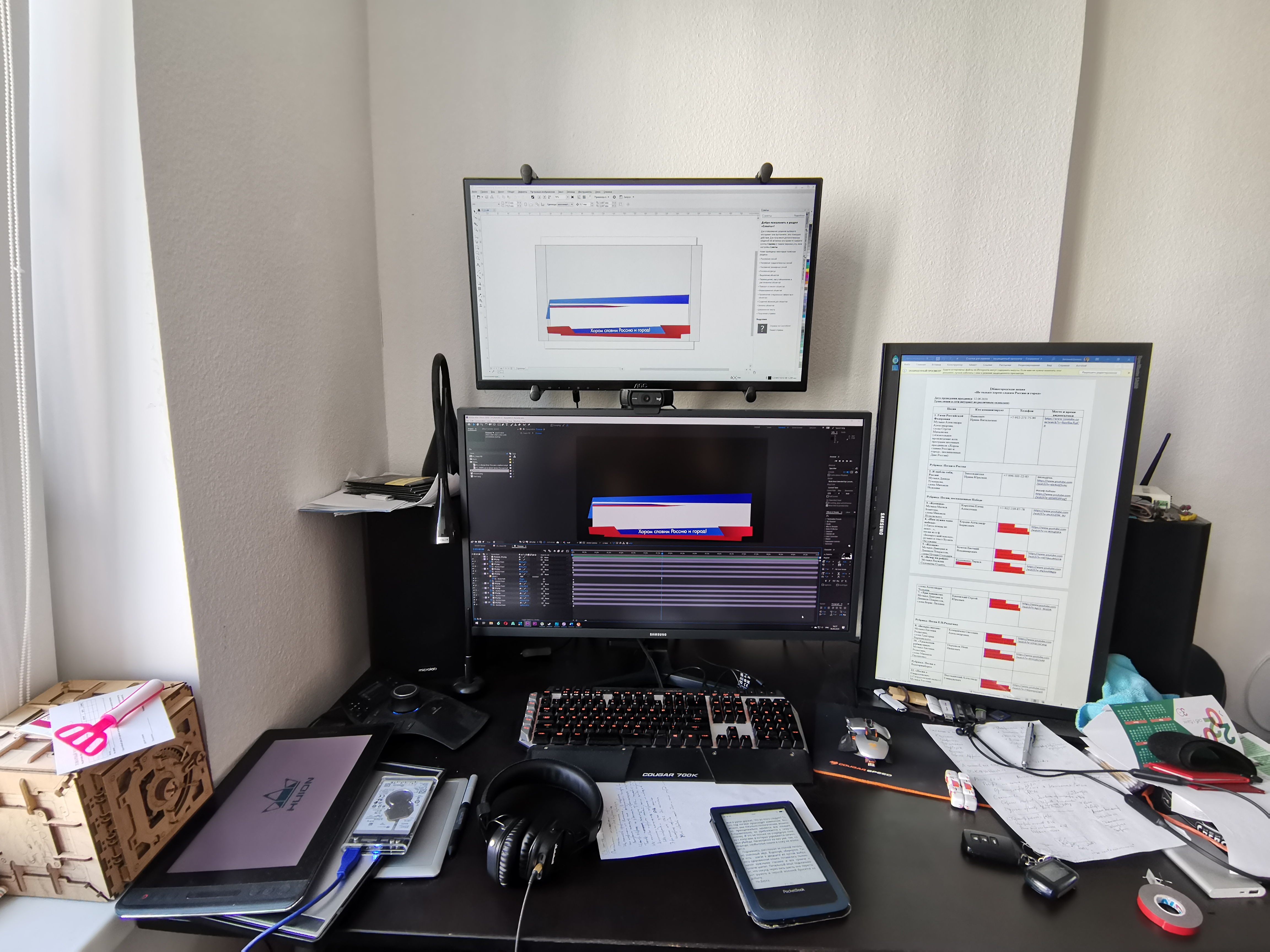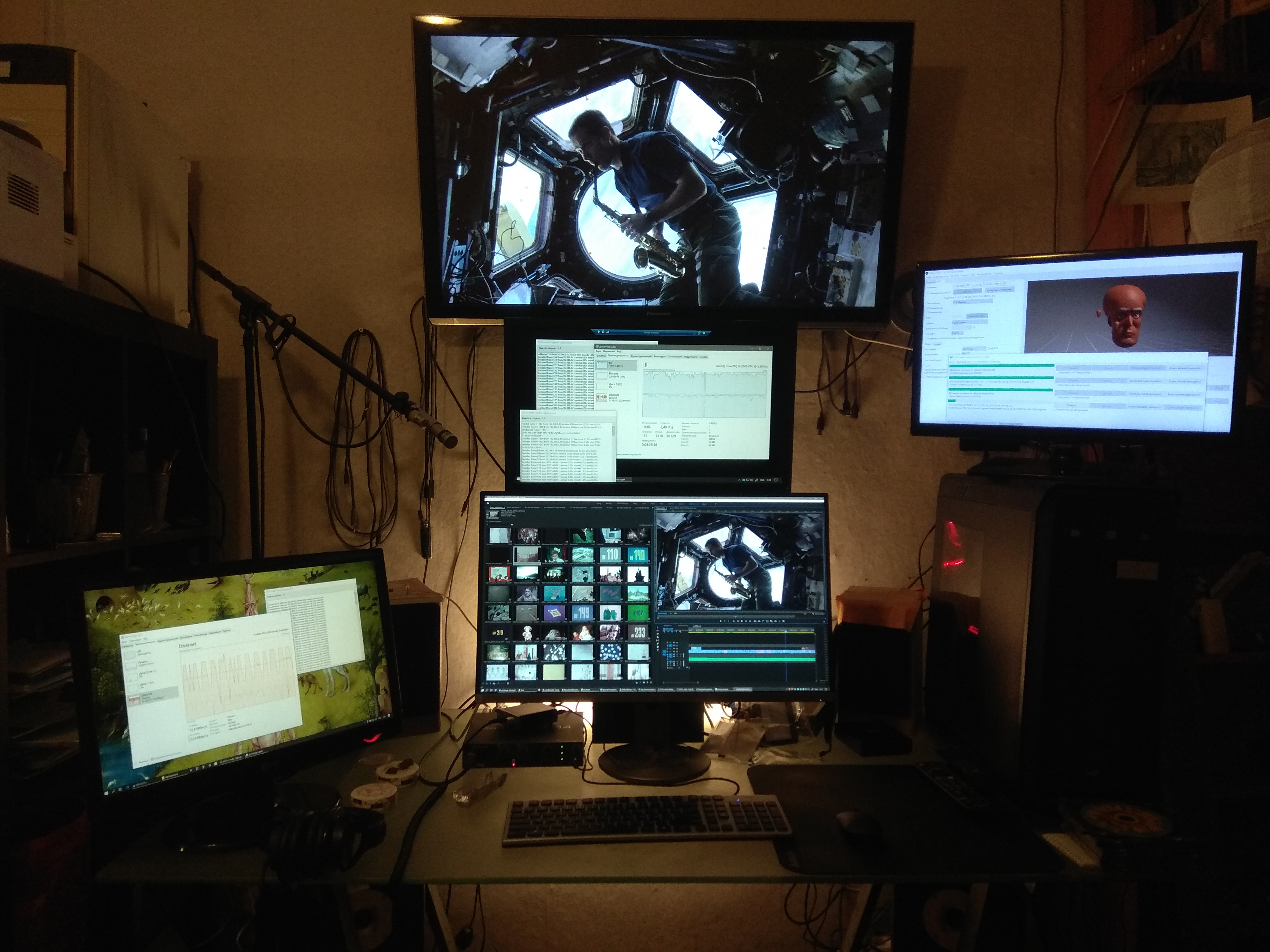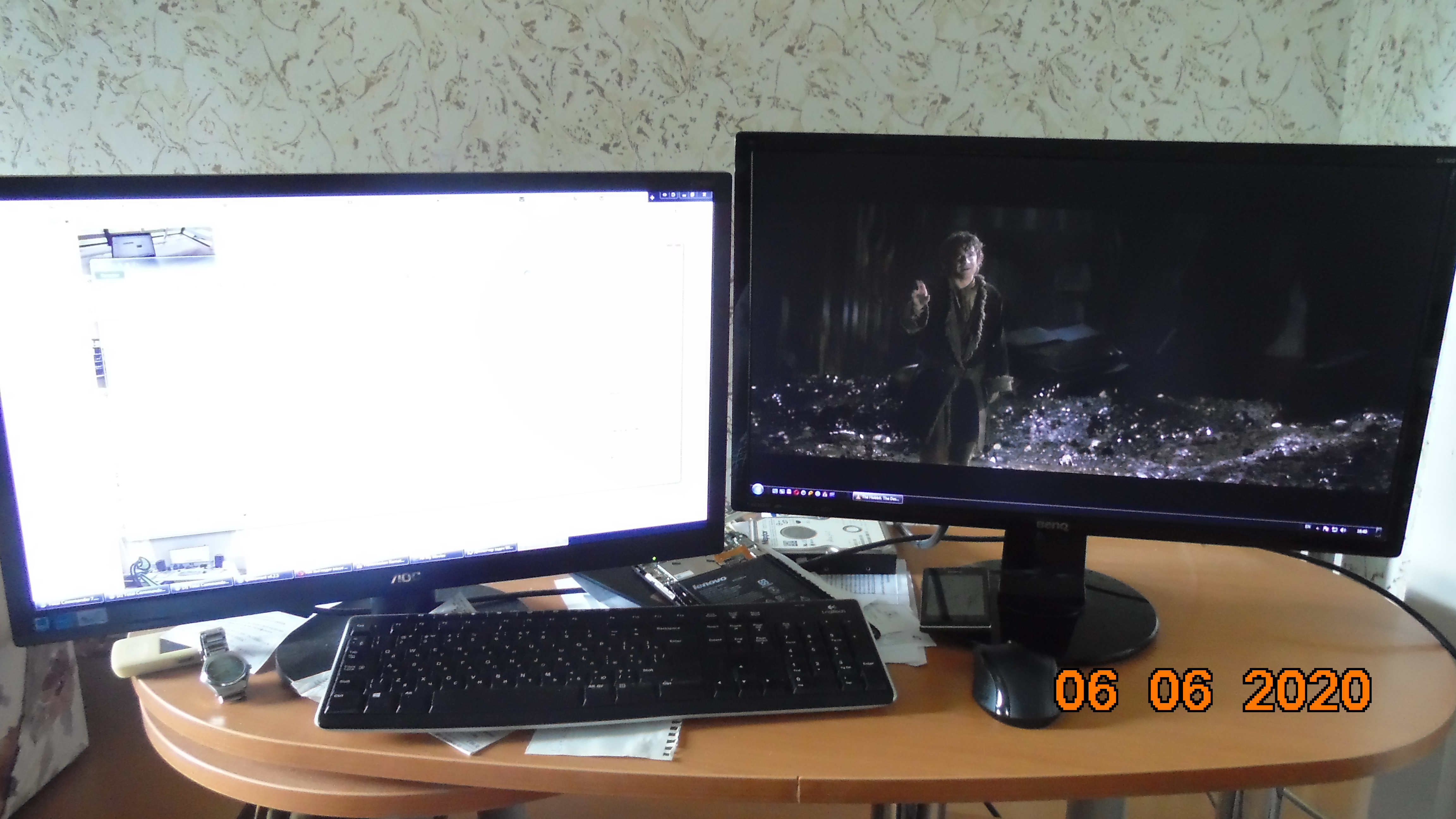 Кошка, иногда сидящая на системном блоке справа, ушла, не любит суеты. Ничего не убирал, бардак обычный.