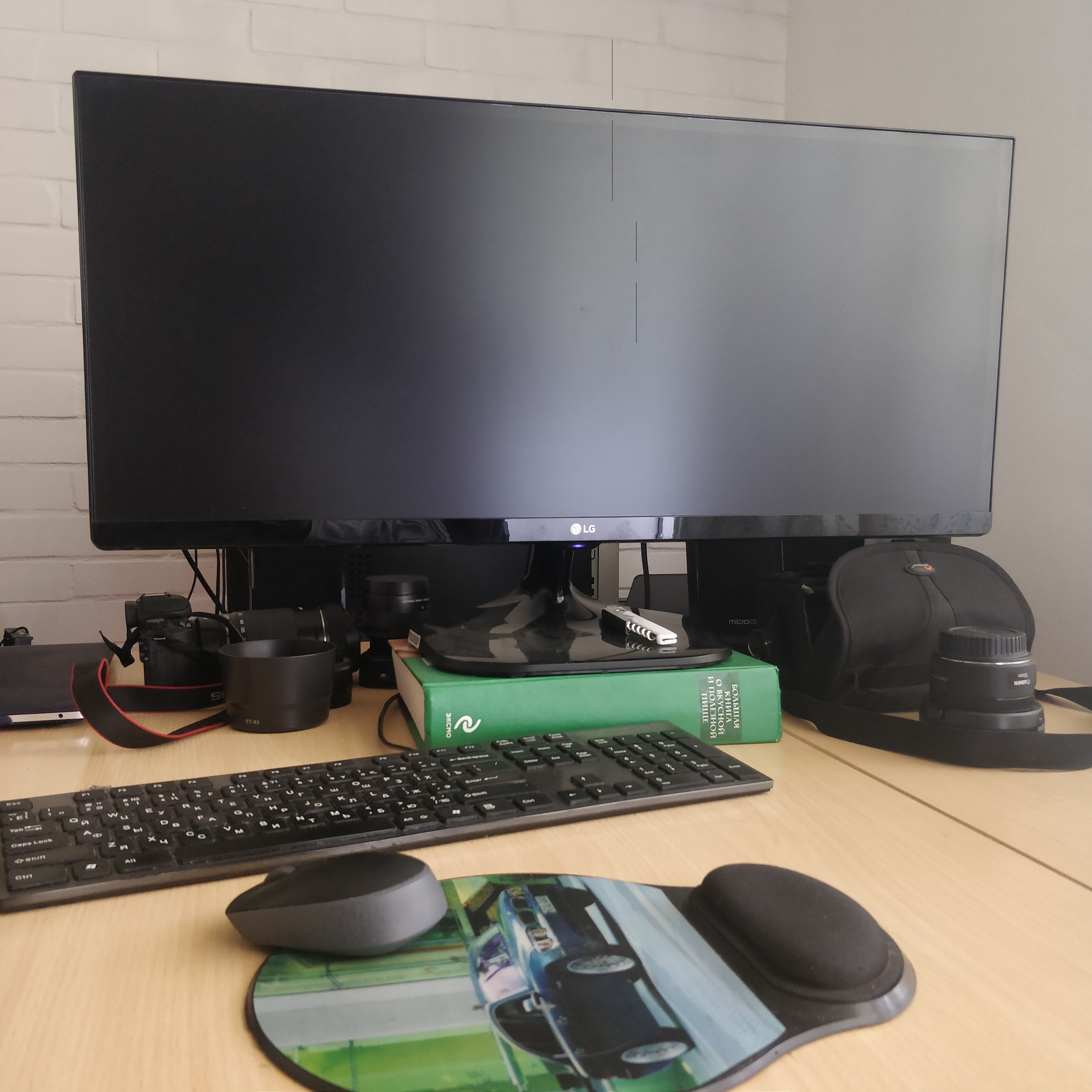 Отлично, только у вас монитор покоцанный прямо посередине - ну или же это артефакты, вызванные грязной матрицей вашей камеры.