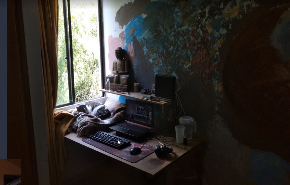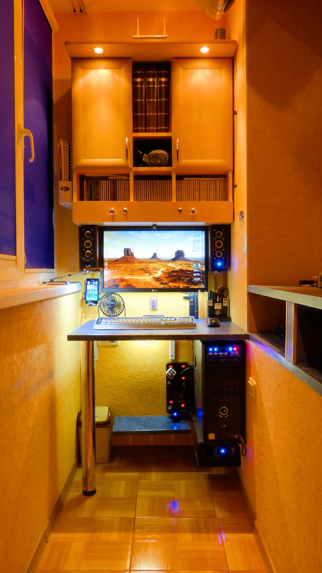 Клава на подоконнике как художественная инсталляция - оригинально. А розетки под потолком прикольно 😄 Ну и не совсем бункер, окна же есть. Зато никто не будет донимать "что за кресло, подскажите модель!" 😉