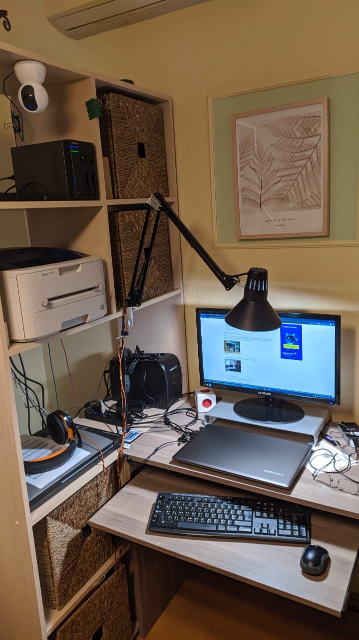 Вот моё рабочее место. Ну, как рабочее. Типа обиталище домашнее 😄