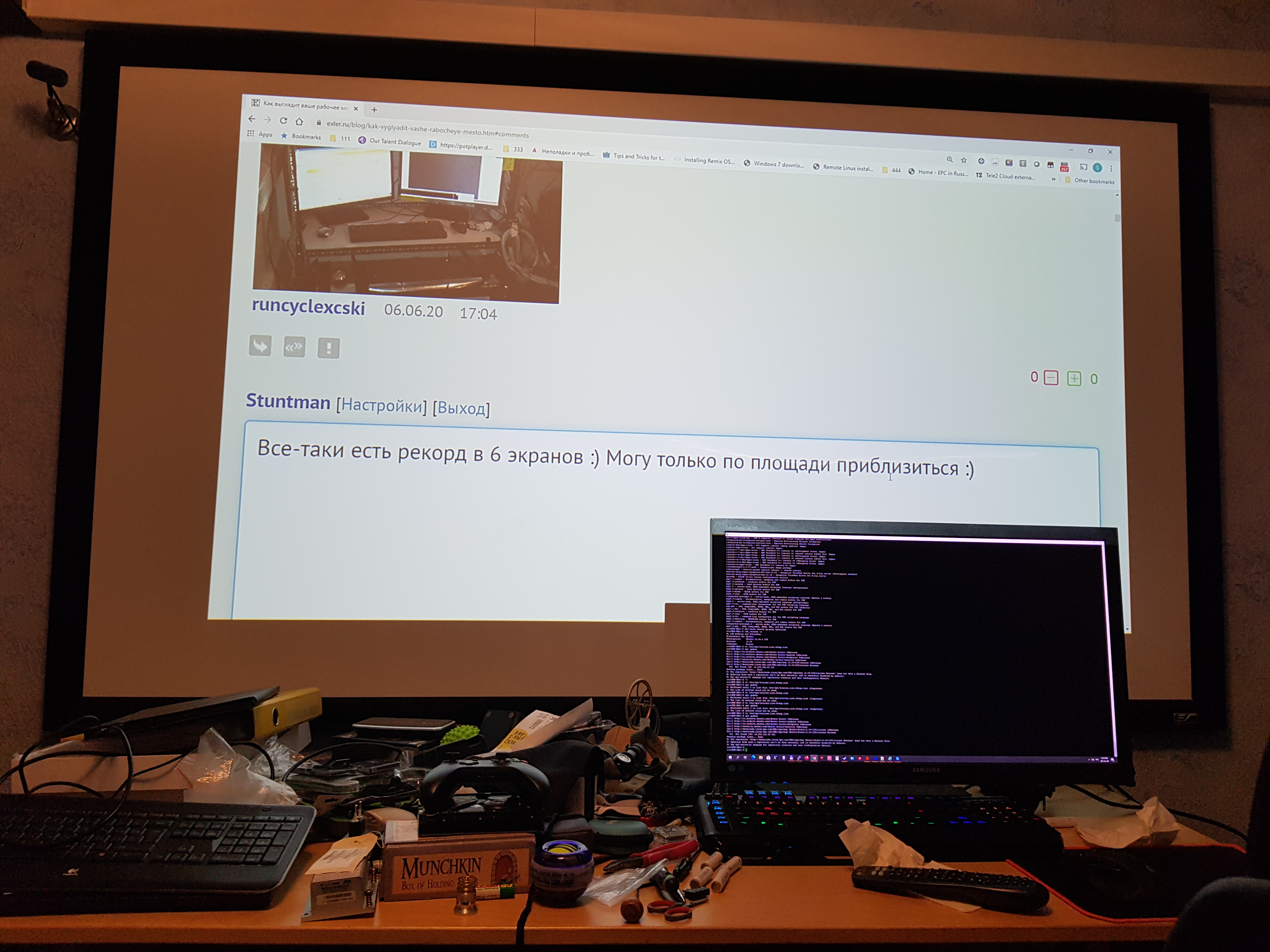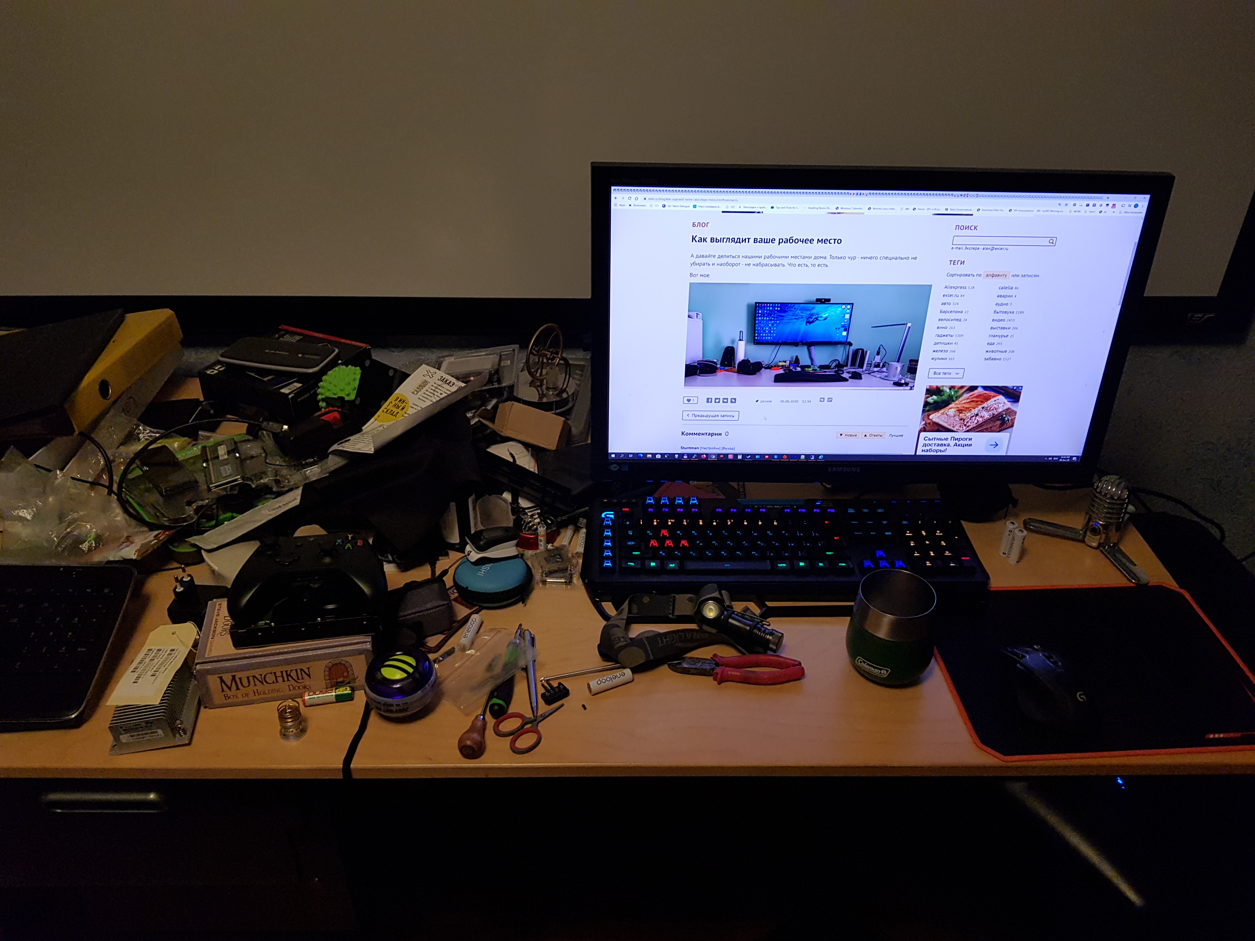 Под конец недели. Тоже не убрано.Он это называет "не убрано"... Слышишь, Бивис?!Я бы показал обычное состояние своего рабочего места, но оно у меня на работе, а я на выходных дома. (а самоизоляция — это не про нас).
