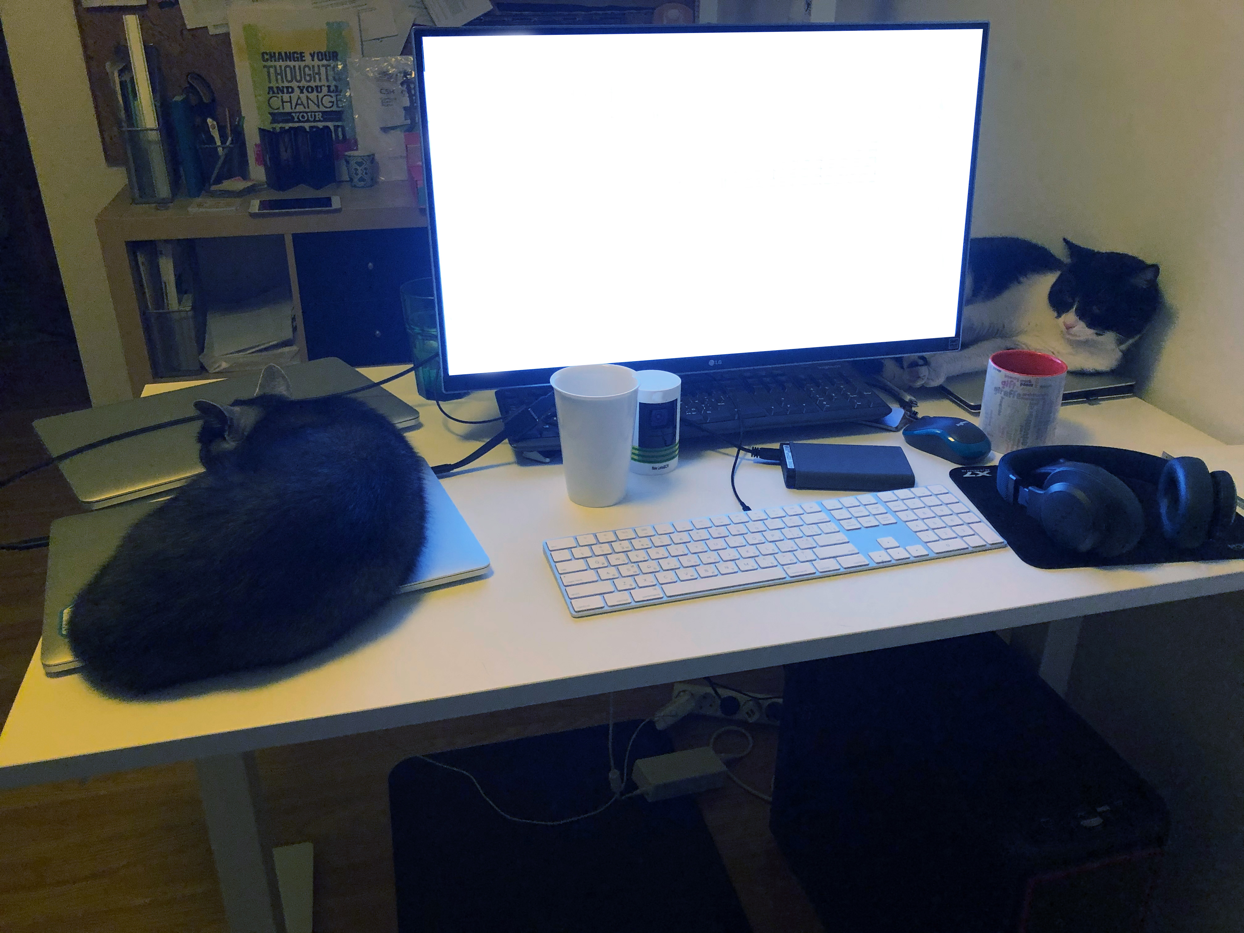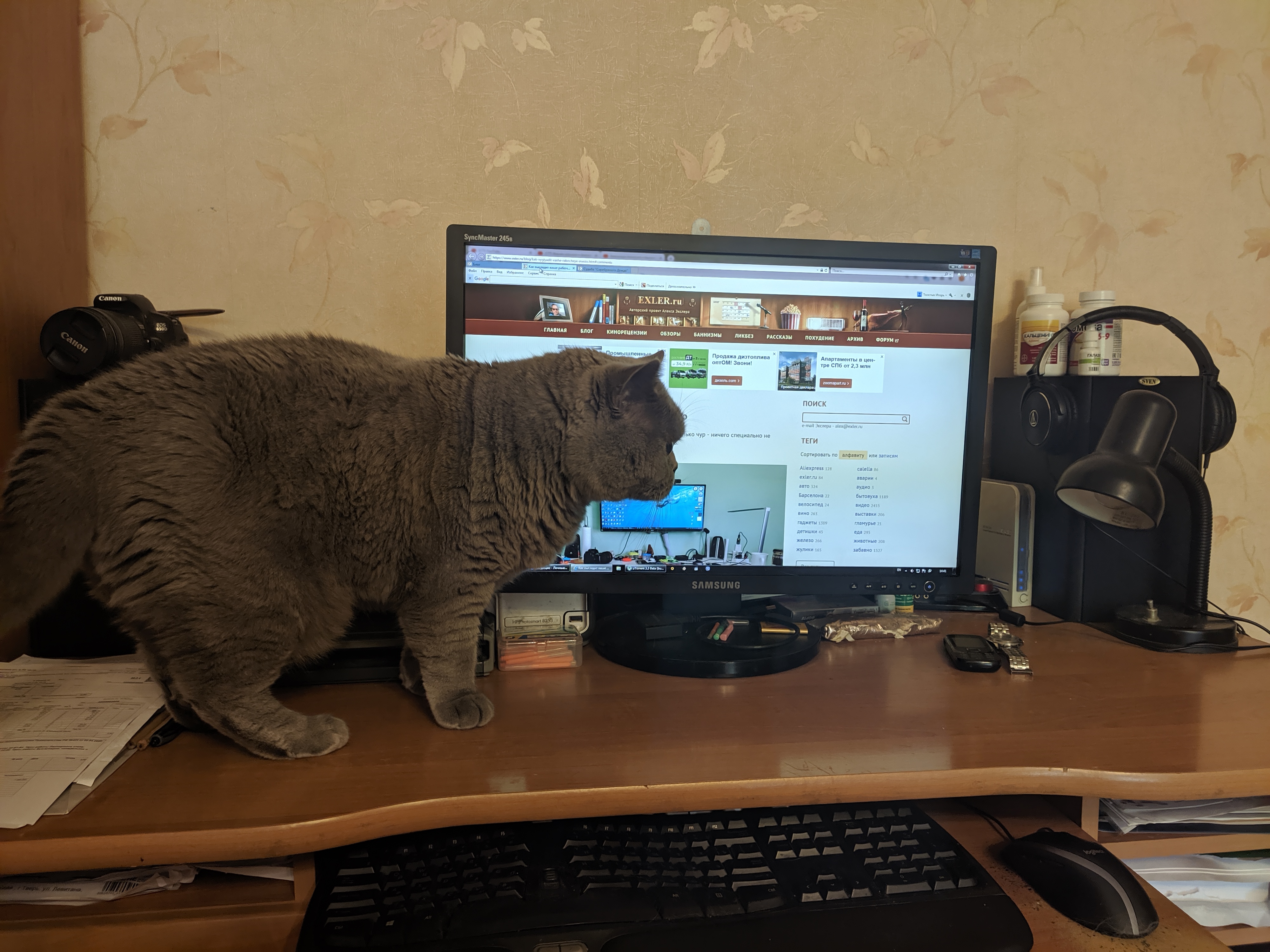 ага, Когда делал фотку своего стола, первой мыслей было притащить на стол котов 😉