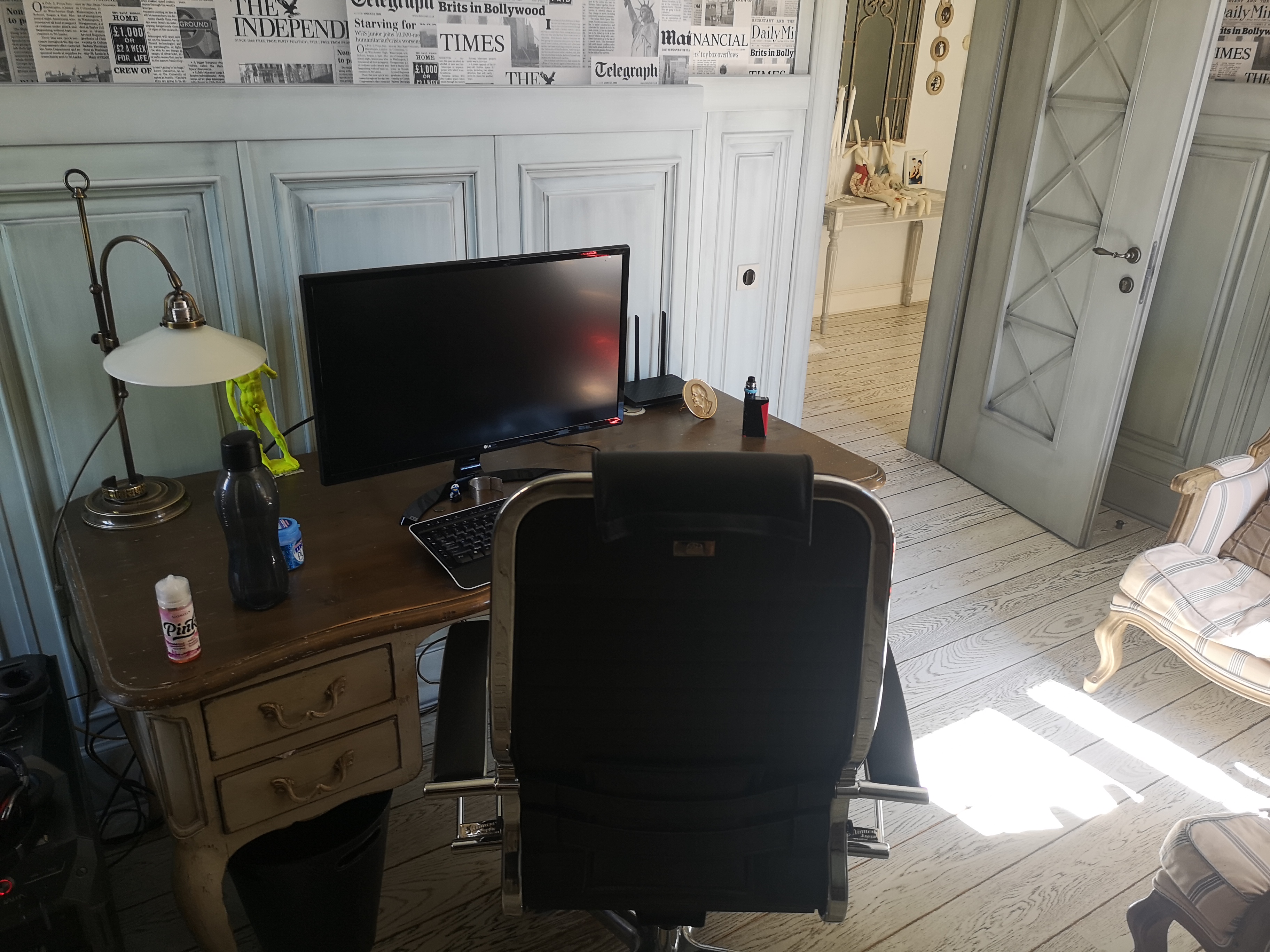 Выгнали из офиса. Сижу за барным столом. Высиживать день на барном стуле, то ещё удовольствие, но организовать рабочее место в моих хоромах возможности нет ((