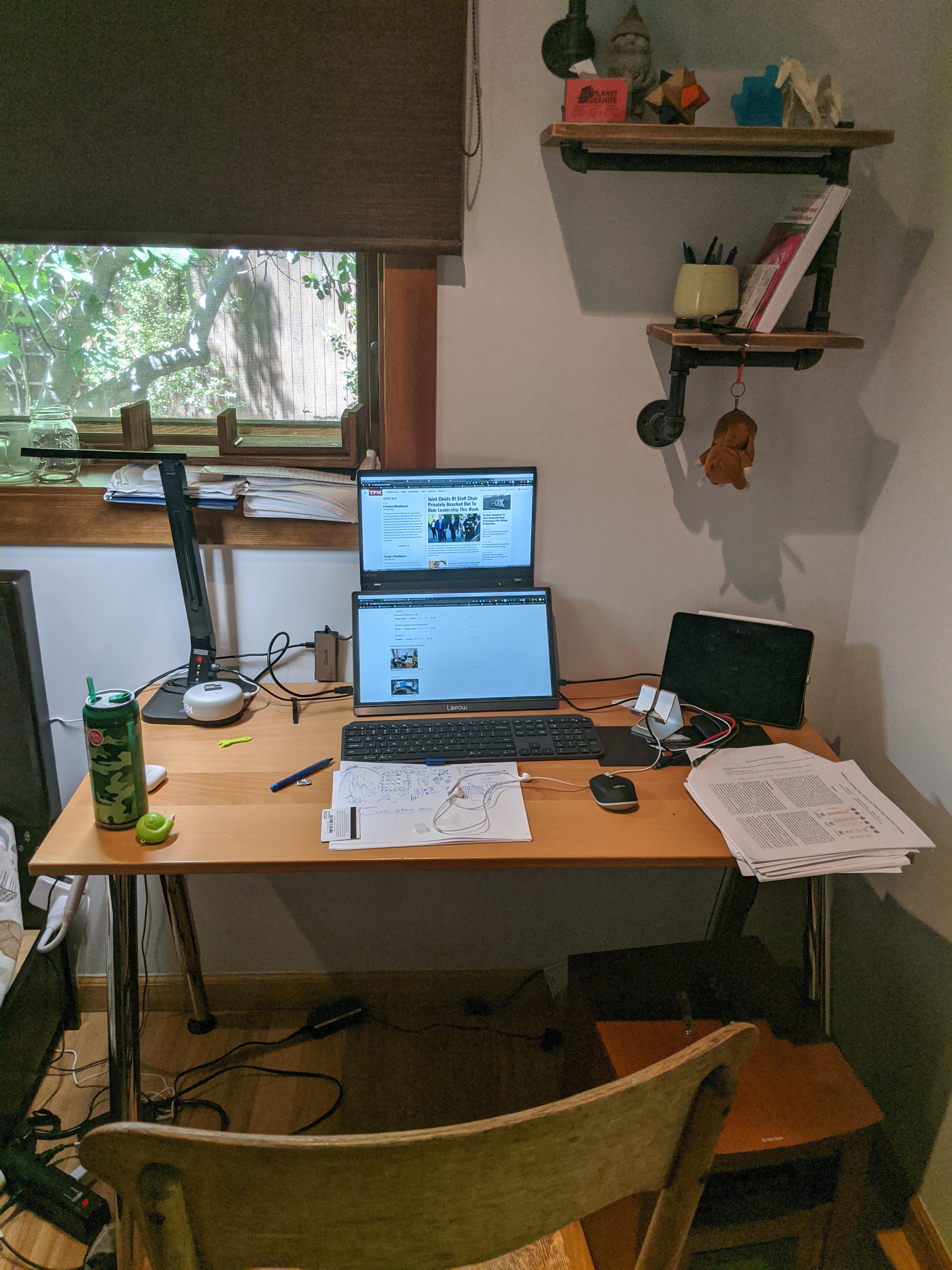 Я бы показал обычное состояние своего рабочего места, но оно у меня на работе, а я на выходных дома. (а самоизоляция — это не про нас).