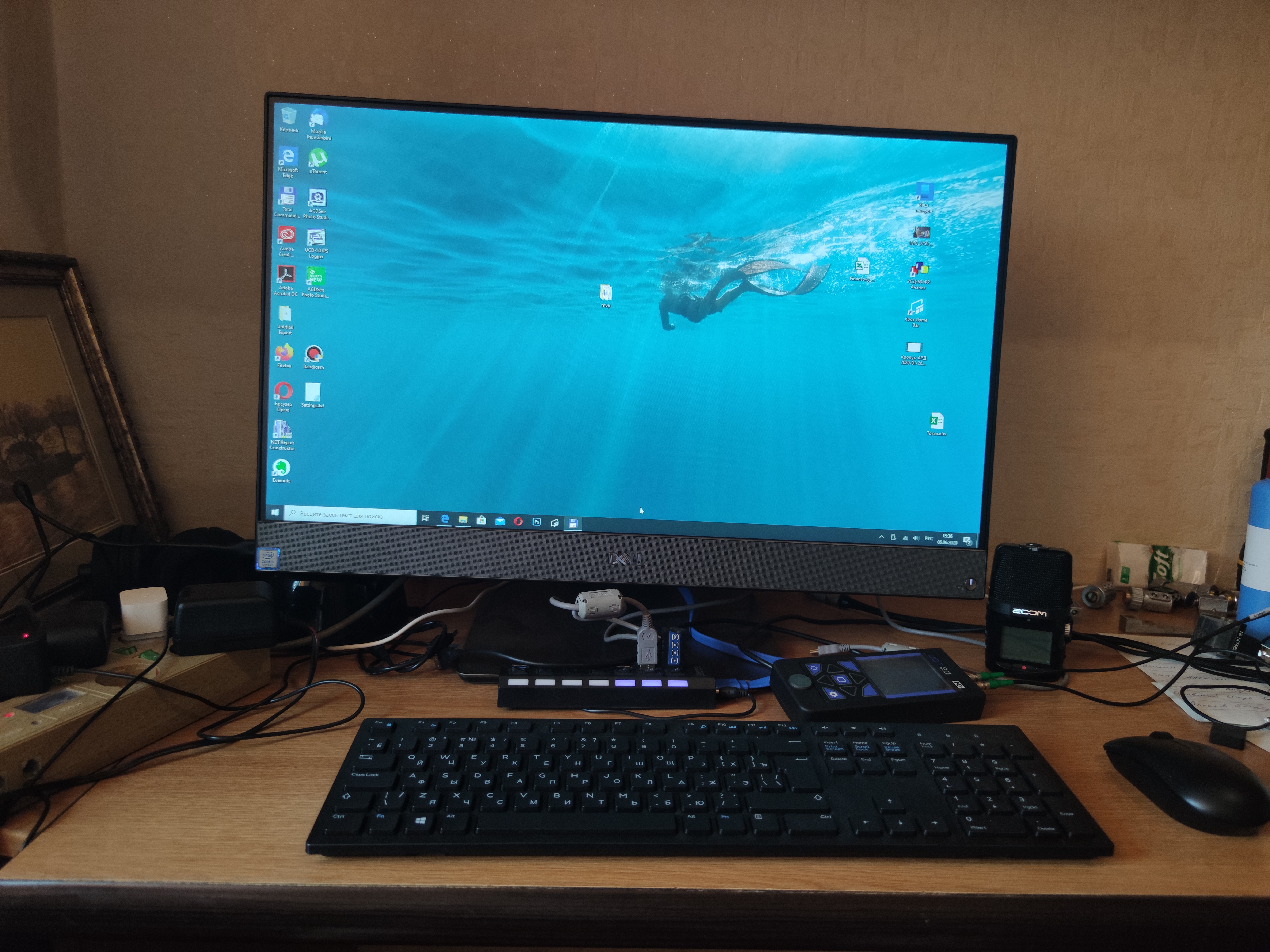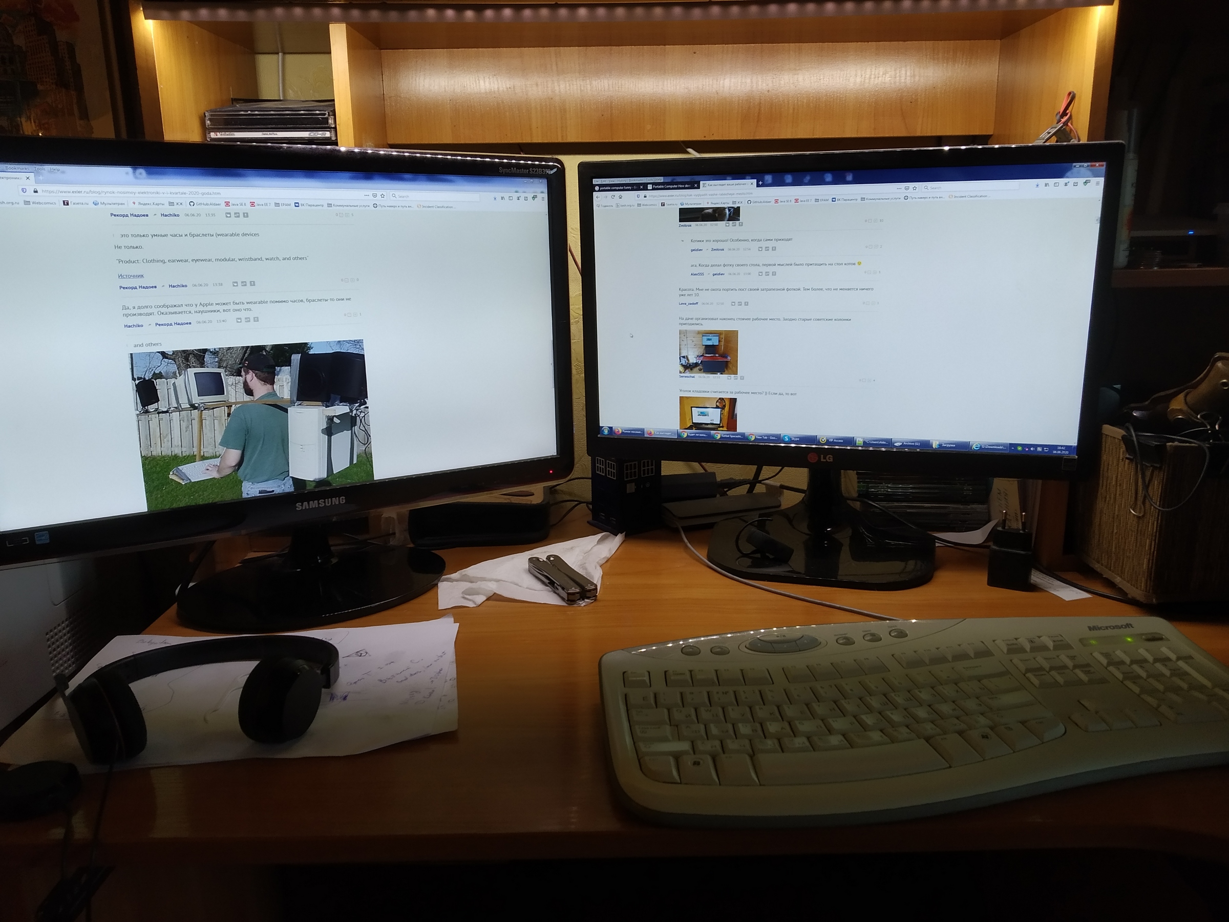 Снизу в синей кожуре - планшет хуавей, кнопочные телефоны (2шт по 2 симки) для работы. мышка и клава с ДНС самые дешманские, монитор ЛЖ на 24" кажись. тоже дешманский. На ноуте ледит контейнер-недельник для лекарств пожизненных. Ибо опять жэ возраст 😄