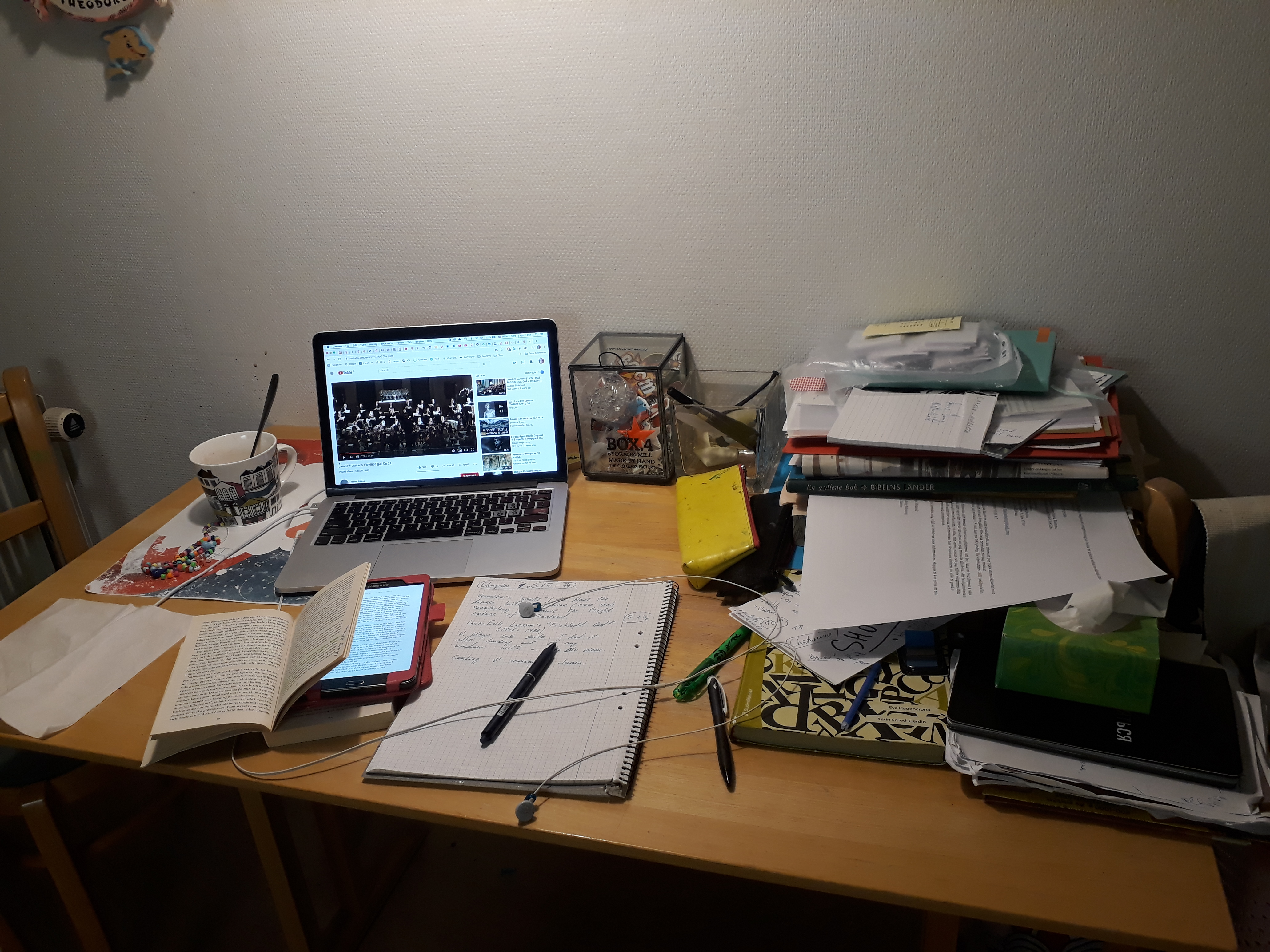 Изучаю, фоном сериал.. 3й моник сегодня не нужен. Треш на столе для меня не треш - важные вещи рядом.