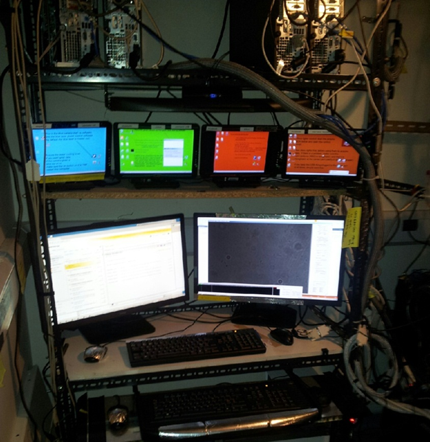 Не буду постить фотку с чужого рабочего места, но поверьте на слово, там тринадцать мониторов. квадрат три на три и по бокам еще по паре штук.