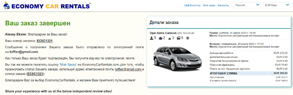 Взял полное покрытие, отметил все опции, получилось €300, из которых €112 нужно было оплатить сразу, то есть при получении машины оставалось €188.