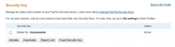 Ну и все, двухфакторная аутентификация задана. Теперь при каждом входе в PayPal вам будет высылаться код на телефон и его надо будет ввести в соответстующем окне. Деактивировать это можно в разделе Security Key.