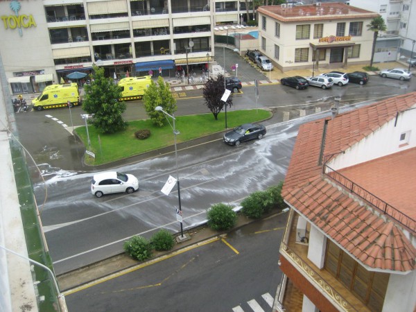 В Греции, в Афинах так же. На соседней улице бывает воды почти метр, легковые не могут ездить, колесо велосипеда полностью покрывает!! И через 3-4 часа так сухо, как будто ничего и не было. А по центру города, как и в Сеуле, проходит специальный супер-сток для ливней.