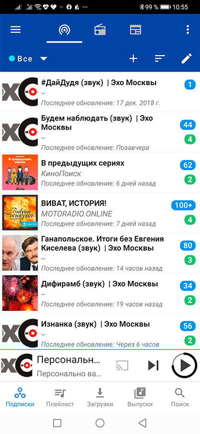 Замечу, что подписан я на много всего - на всякий случай, чтобы было что слушать, например, в дороге. Однако постоянно слушаю только нижеследующие передачи.