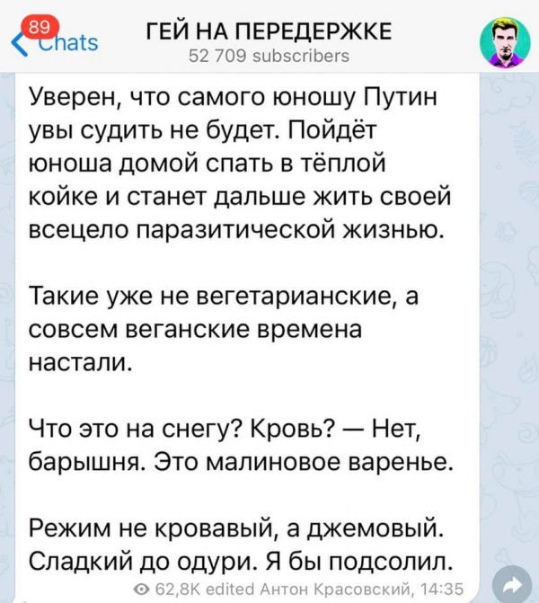 Красовский, конечно же, никакой не гей. Он такой реальный боевой пидарас! И он давно уже заслужил медальку.... нет, лучше медальку ордена, которой недавно наградили другого такого же боевого - "Заслуженный говноед России"! Ну дайте ему медальку, старается же человек!