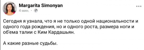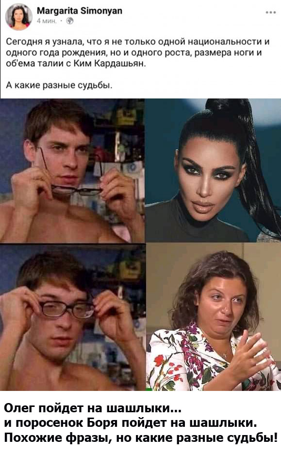 Неудача Симоньян в том, что с возрастом произошла полная Ким Кардашьян, в отличие от самой Ким Кардашьян, при этом сравнивает себя по талии.