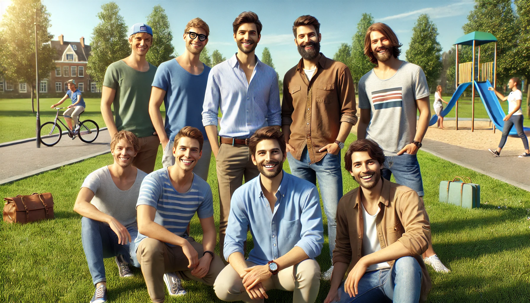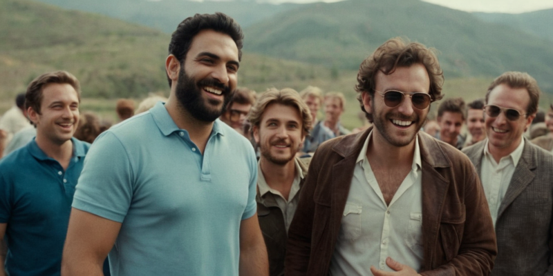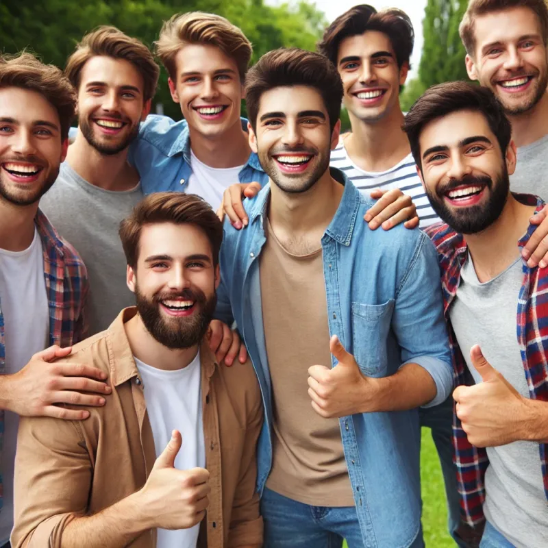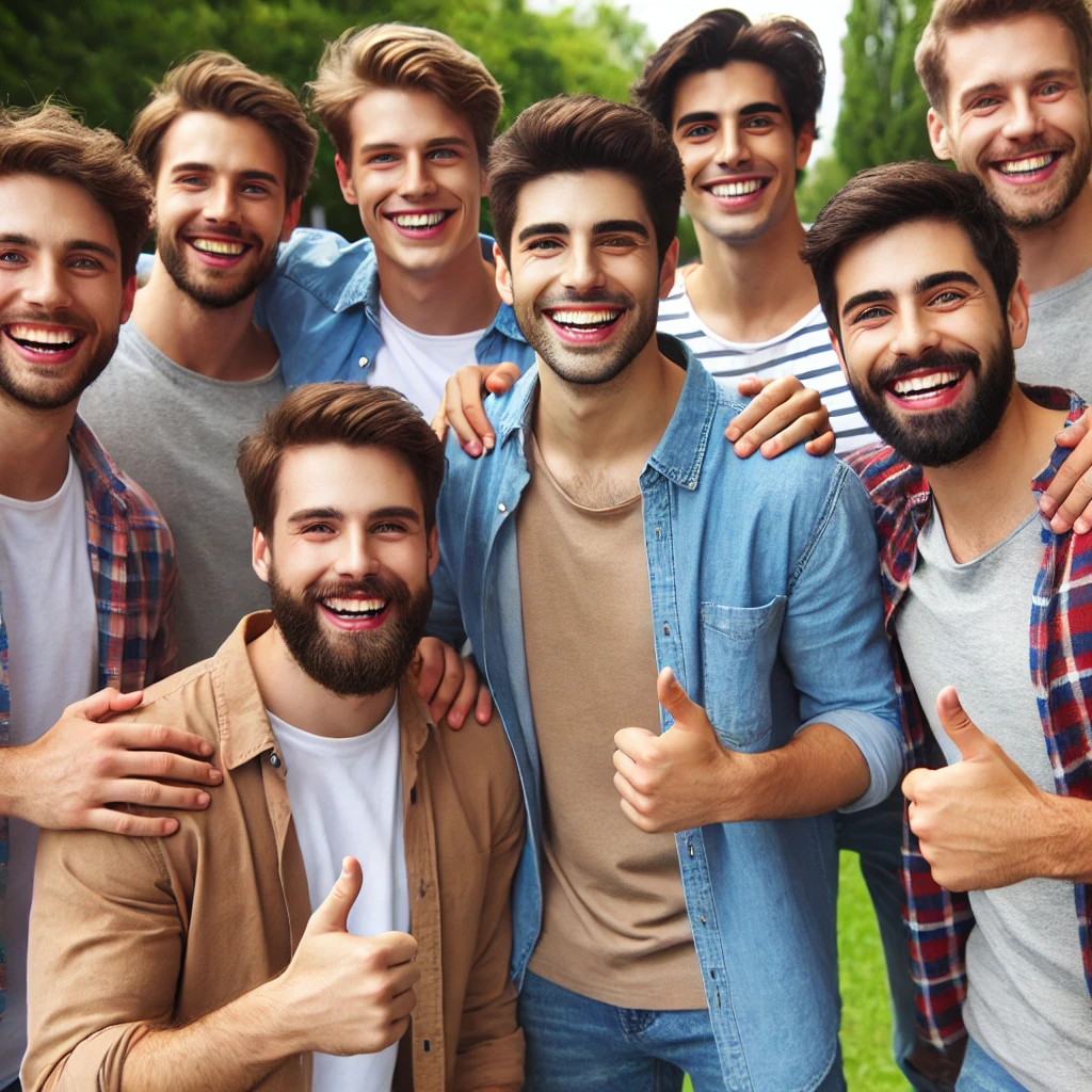 Проверял тут одну штуку. Попросил четыре разных ИИ нарисовать группу довольных мужчин, безо всяких уточнений.