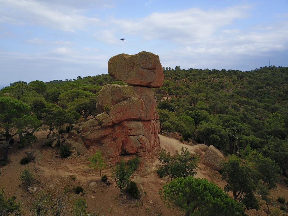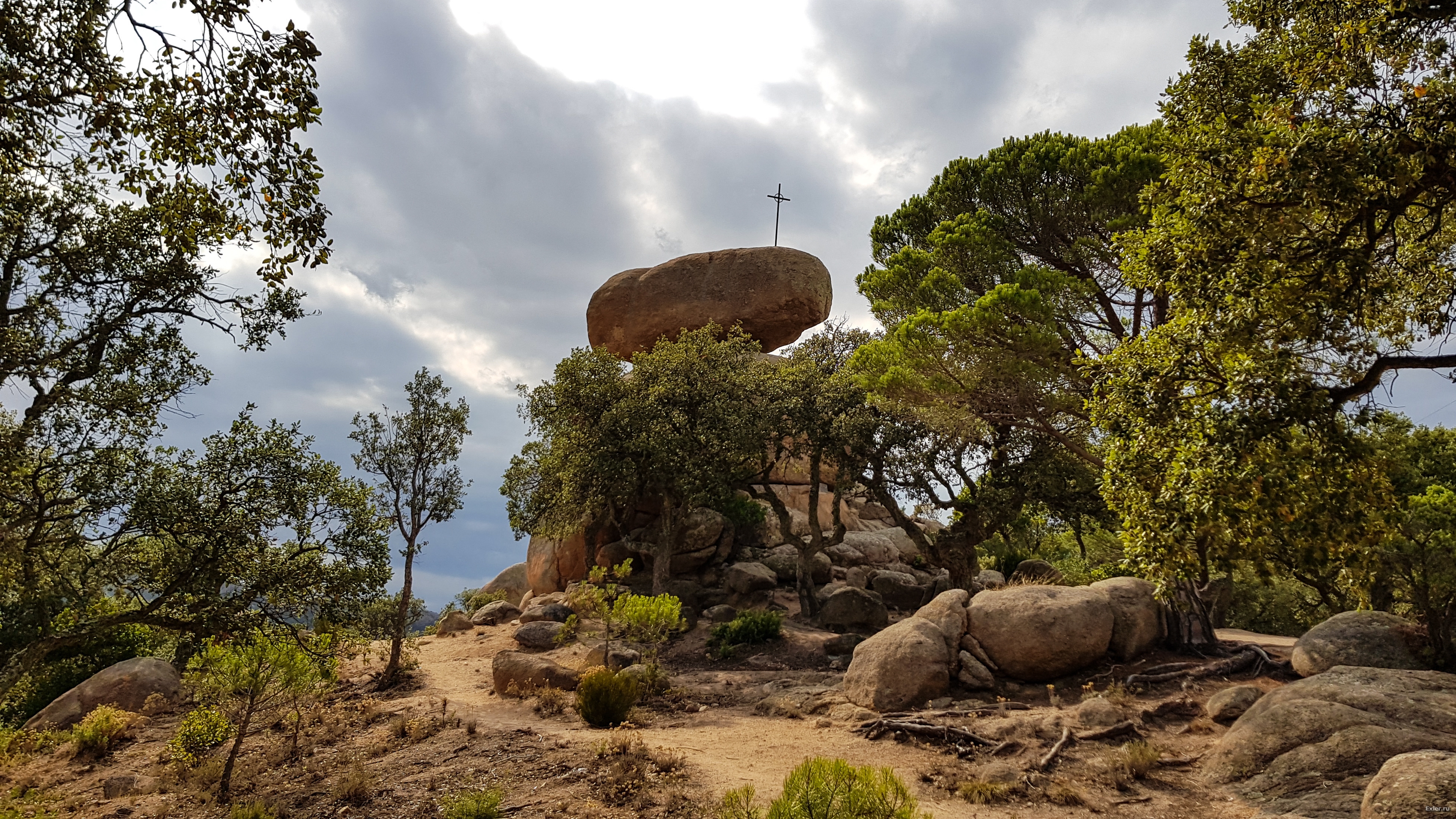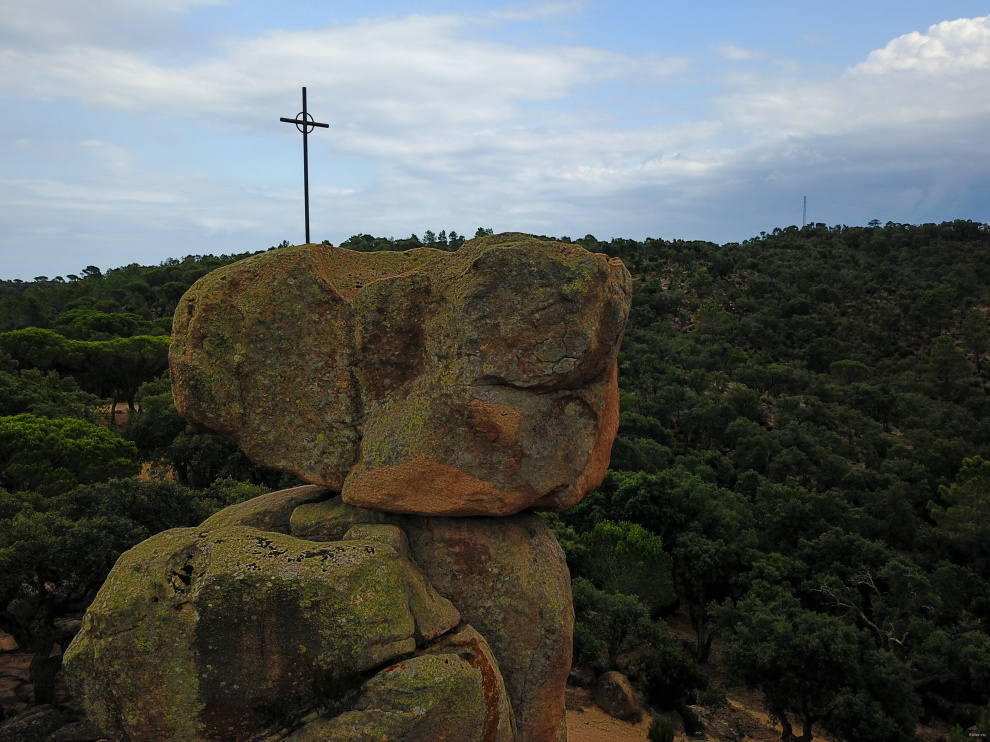 Побывал в очередной раз в Сан-Фелиу-де-Гишольс. Друзья показали интереснейшее природное явление - каменную статую, на вершине которой свободно раскинулась многотонная каменюка.