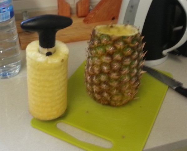 1: Кстати, очень удобная штука - специальный "штопор" для ананасов. Разделка ананаса занимает ровно минуту.