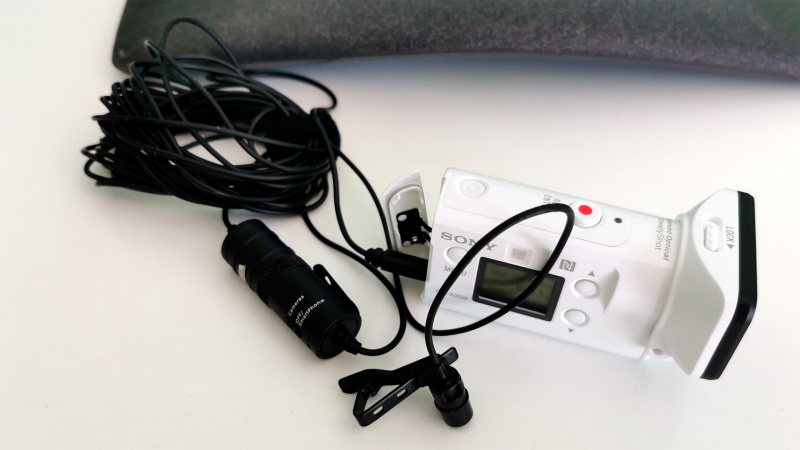 Обустраиваю себе место для записи видеороликов - ну, чтобы уже все было нормально, а не как в тестовом видеоролике, который я специально слепил "на коленке". Понял, что в моей ситуации удобнее всего писать видео на экшн-камеру Sony FDR-X3000. Почему? Во-первых, она у меня уже есть, что немаловажно. Во-вторых, она отлично пишет видео в 4К (потом редактировать удобнее). В-третьих, у нее настраивается угол съемки (можно сделать неширокий, что в данном случае очень нужно). В-четвертых, у нее выносной дисплей (прямо-таки спасение в моих условиях, где камеру приходится ставить близко к стене: кстати, поэтому я не могу использовать смартфон). Ну и, в-пятых, к ней можно подключить внешний микрофон.