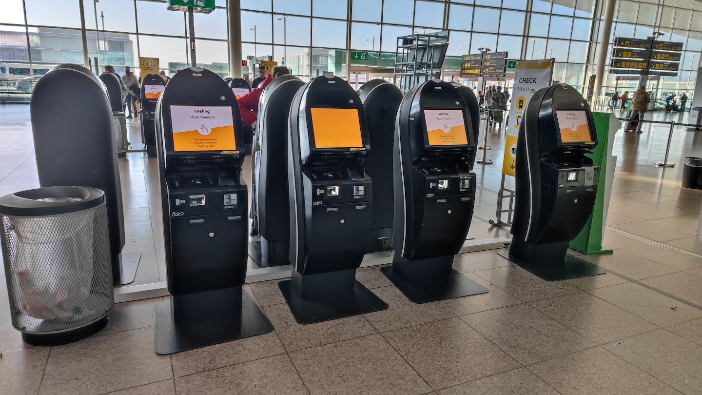 Вуэлингом я давно не летал, оказалось, что там теперь все сплошное самообслуживание: сначала сам регистрируешься в автомате, он тебе выдает бирку для багажа и посадочный (если нужен), потом ставишь чемодан на ленту, сканируешь код бирки, и если все нормально - чемодан уезжает. Прикольно. Мы первый раз это проходили, и то весь процесс занял минут восемь. Все просто и быстро.