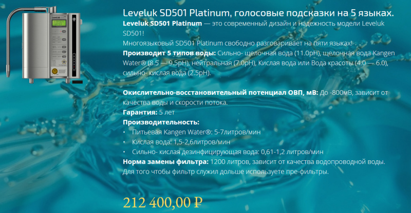 Что-то, я считаю, как-то демпингуют они. Агрегат только для водородной воды стоит 350 тысяч, а тут тебе и ощелачивание, и структура меняется, и минералы в свободной форме. Я рассчитывал минимум на 400 тысяч.