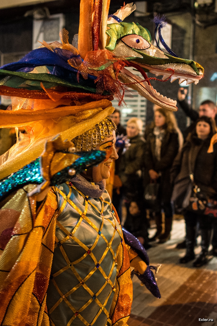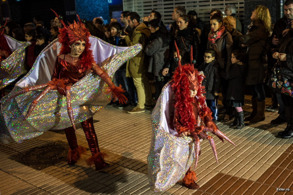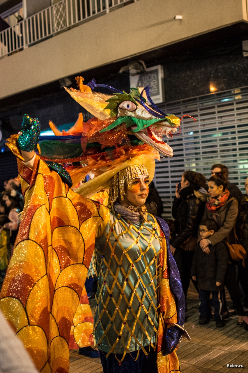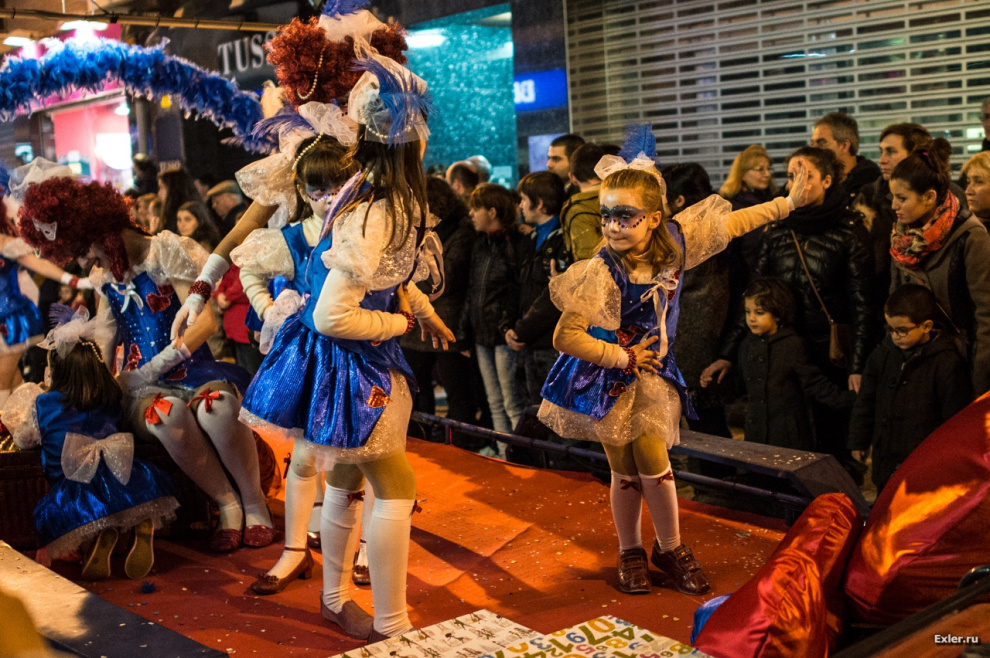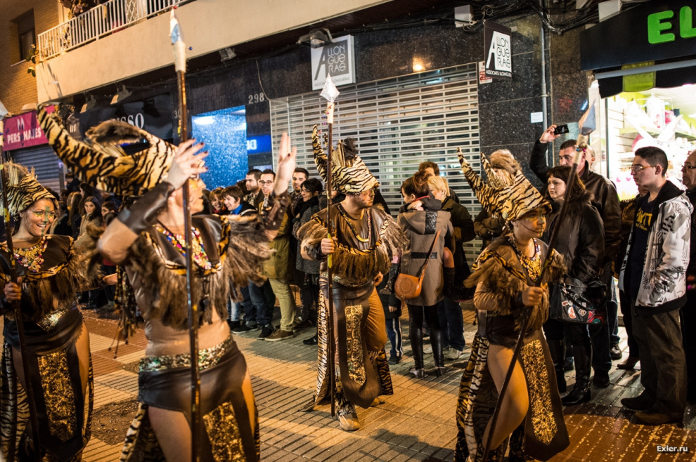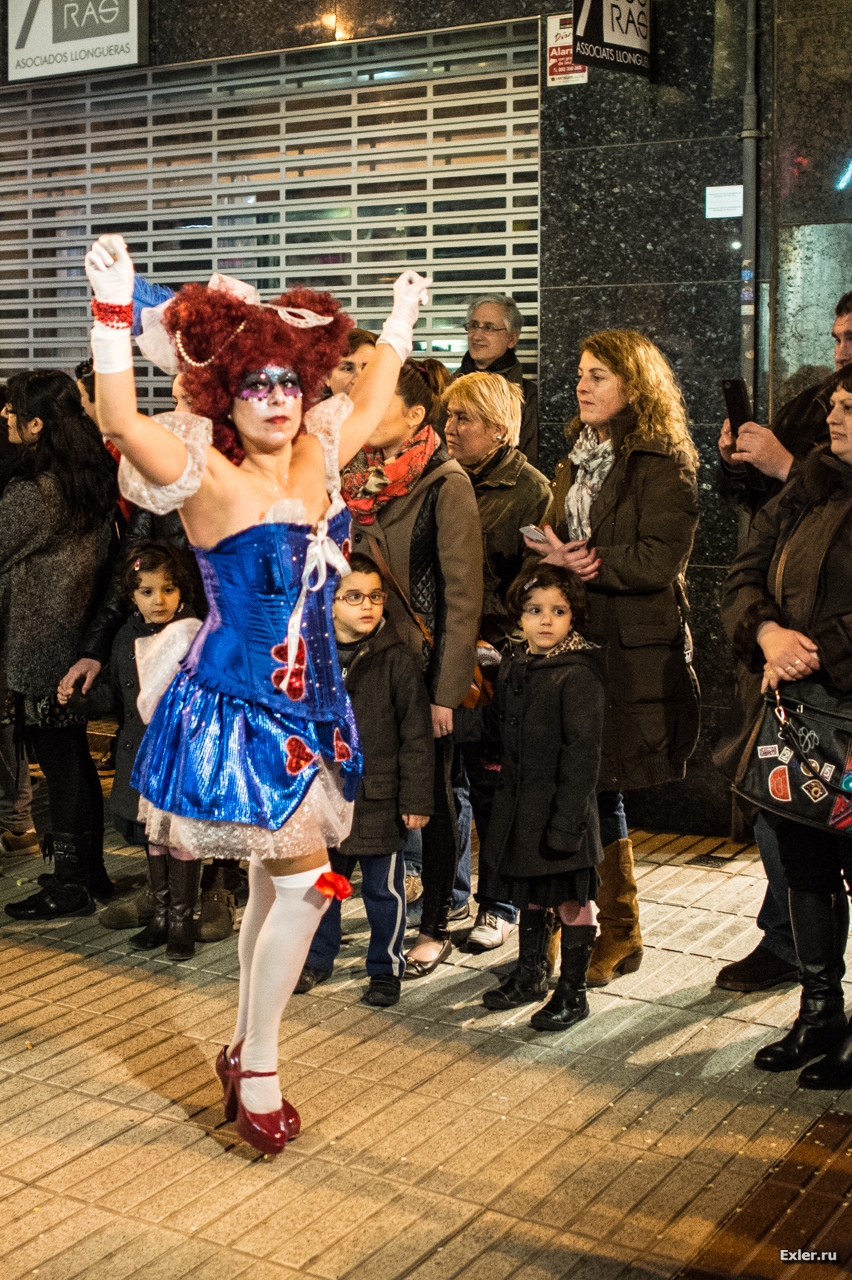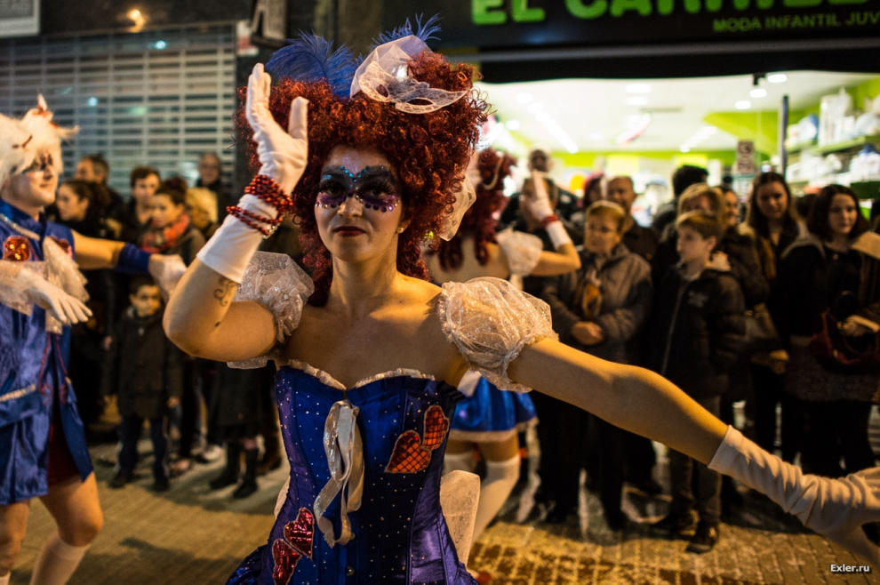 В субботу вечером, 8 марта, в городе Калейе прошел веселый карнавал, в котором принимали участие как жители Калейи, так и жители немаленького количества окрестных городов. Карнавал очень напоминает "Шествие с гигантами", в котором также участвуют жители со всех окрестностей, однако тут шествие поинтереснее, потому что группы участников готовят и экзотические костюмы, и машины сопровождения, многие из которых бывают очень причудливо украшены, и звуковое сопровождение, и танцы. Плюс - проводится карнавал вечером, а не днем: шествие начинается в районе 19 часов, проходит через главные улицы двух городов (Пинеды-де-Мар и непосредственно Калейи), змейкой проходит по Калейе и потом в 23 часа в огромном здании бывшей фабрики, которое мэрия нередко использует для различных мероприятий, проводятся награждения за лучшие костюмы и лучшие выступления.