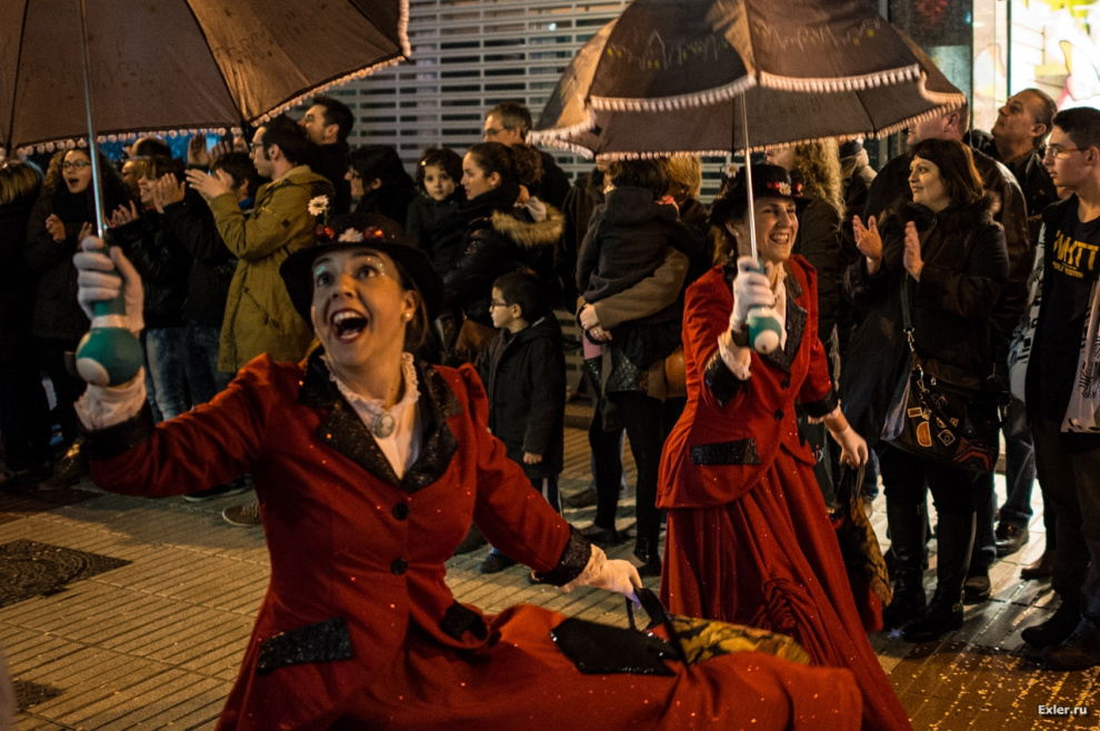 Проходит это, как обычно, очень весело: народ заранее собирается на главной улице города, ждет начала шествия, а потом, когда шествие начинается, город взрывается радостными криками и все веселятся и апплодируют выступающим.