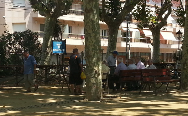 В платановой аллее на набережной любят собираться каталанские деды. Они приносят с собой стульчики, садятся кружком и общаются. Нет, пиво не пьют и даже в домино не играют. Просто беседуют. Сидит там обычно от десяти до двадцати человек каждый день по несколько часов.