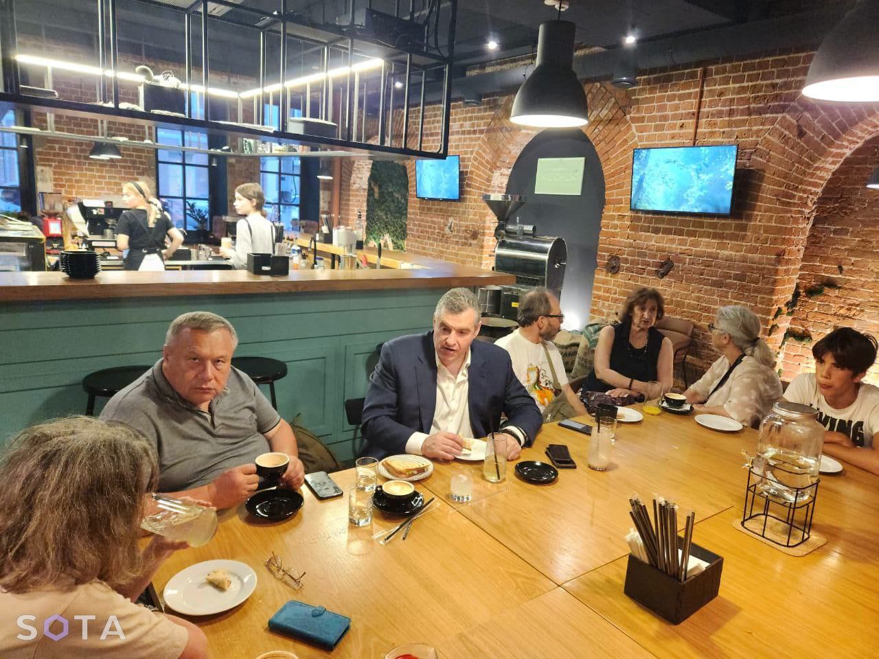 Сегодня Слуцкий на служебной машине с номерами АМР приехал в Касимов, где сначала встретился с Кнайсль в кафе «Касимовский дворик», после чего они переместились в кафе Keeper of grains.