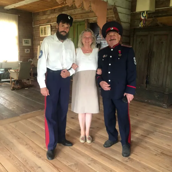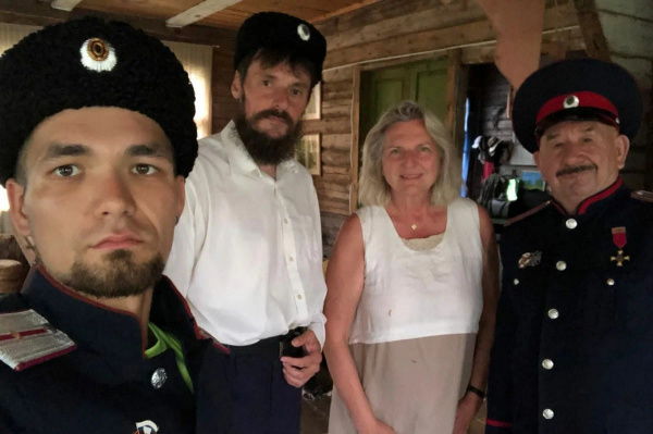 Казачий генерал, Вице Президент Рязанского Землячества Валерий Камшилов- Карин Кнайсль, к нам надолго, собирается купить тут дом. Будем ей во всем помогать, казаки берут шефство над ней, научим ее конях ездидь и с шашкой управляться! А зимой на санях! Края у нас красивые!