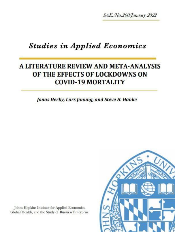 ❗️Метаанализ, проведенный Университетом Хопкинса показал, что "карантинные меры и локдауны практически не повлияли на общественное здравоохранение, но при этом привели к огромным экономическим и социальным издержкам"