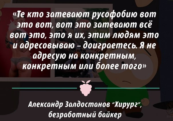 "Останавливать нас здесь бесполезно. Правда за нами, и мы ее добьемся. Все эти действия будут вызывать еще большее противодействие. Самый большой кошмарный сон у них состоит в том, что они боятся сближения Германии с Россией, как в прошлом году они профинансировали фашизм, профинансировали Гитлера, точно так же сейчас они будут делать все, чтобы Германия с Россией не стали друзьями. Они - это мировая закулиса, я ее так называю, сами думайте в голове своей", - сказал Залдостанов.