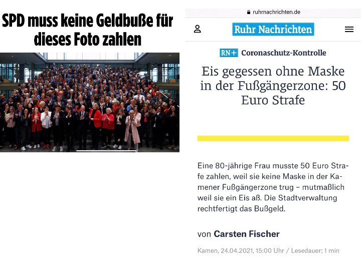 В это же время бабушка 80 лет должна заплатить 50 евро штрафа за то, что шла по улице без маски.