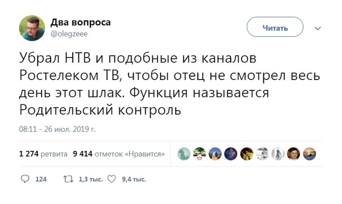 А моя 93-летняя родственница смотрит то самое ТВ и уверена, что ни слова правды там нет. Разъясните отцу.