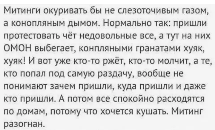 Думаете, если ОМОНу Росгвардии выдать гранаты с коноплей, хоть одна из них доживет до митинга?