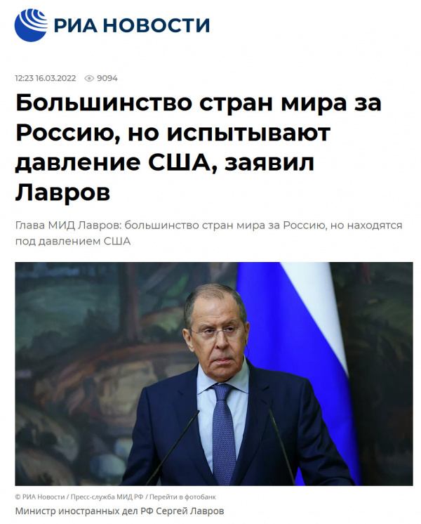 Типичные такие хроники российского эбонария. Большинство стран мира за этих уродов. Ага, ага. Совсем уже вразнос пошли.