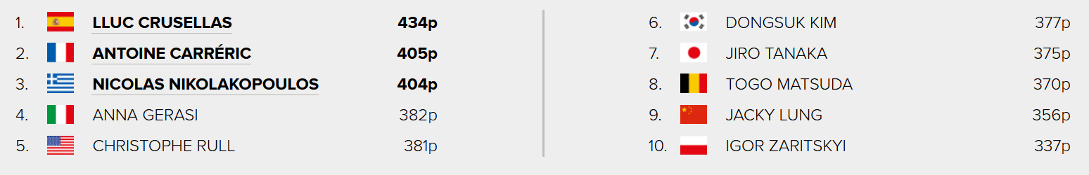 Вот десятка победителей этого года: место, флаг страны и количество набранных пунктов.